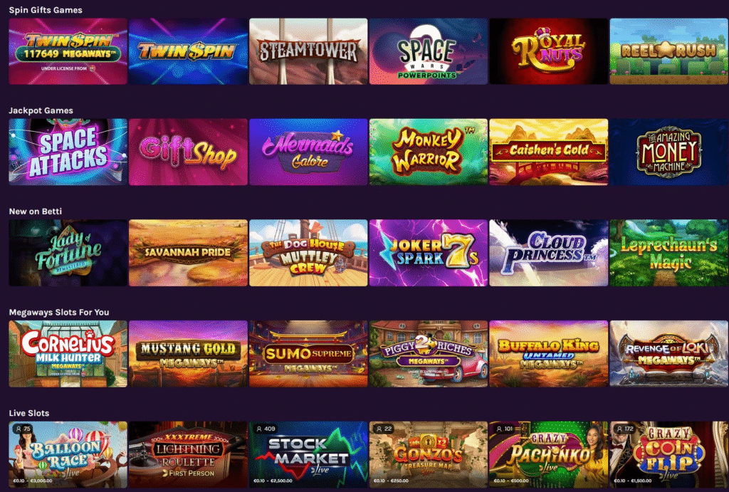 With hundreds of high-quality slot games, Betti Casino partners with industry giants like NetEnt, Microgaming, Pragmatic Play, and Play’n GO. From classic 3-reel slots to modern video slots packed with features, players are spoiled for choice.